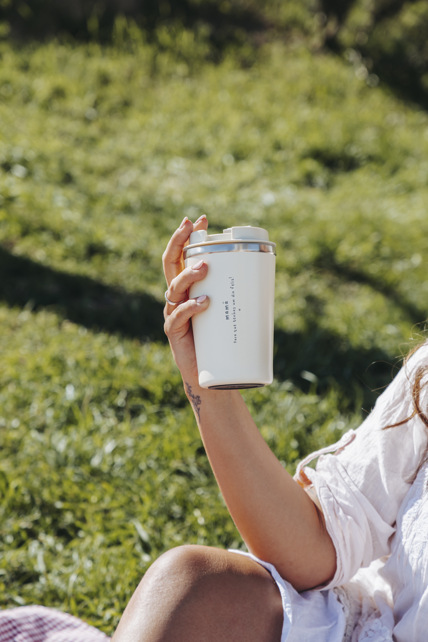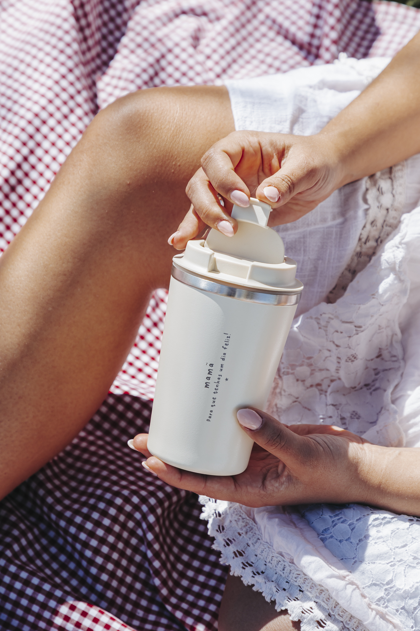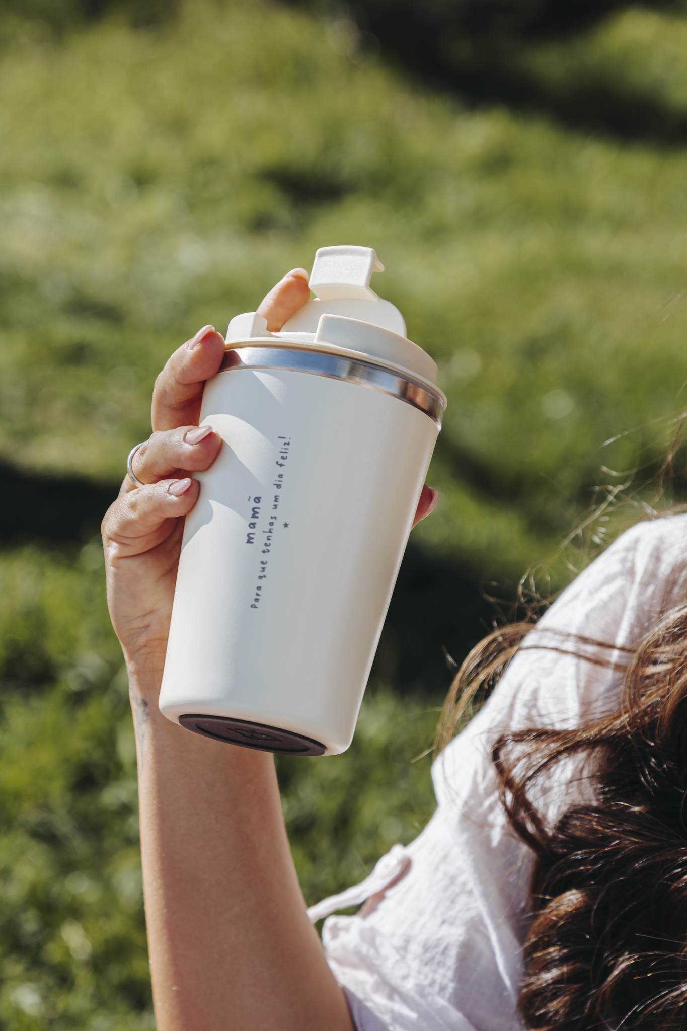 Copo de viagem térmico em aço inoxidável. Com parede dupla e efeito mate.