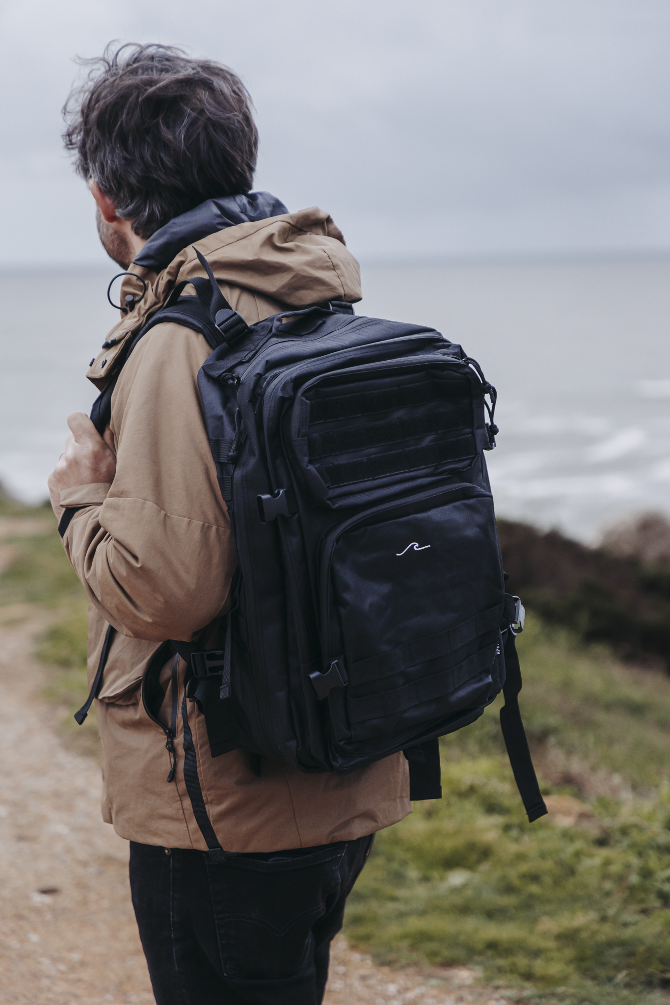 Mochila de poliéster 600D RPET durável. Frente com vários bolsos, bem como suportes elásticos e velcro para pendurar os acessórios. Compartimento principal com fecho de correr bidirecional e vários compartimentos internos, com capacidade para portáteis de 17 polegadas. Inclui cantos reforçados e pega de transporte. Com alças acolchoadas e ajustáveis para as costas e ombros, e alças frontais para maior conforto.