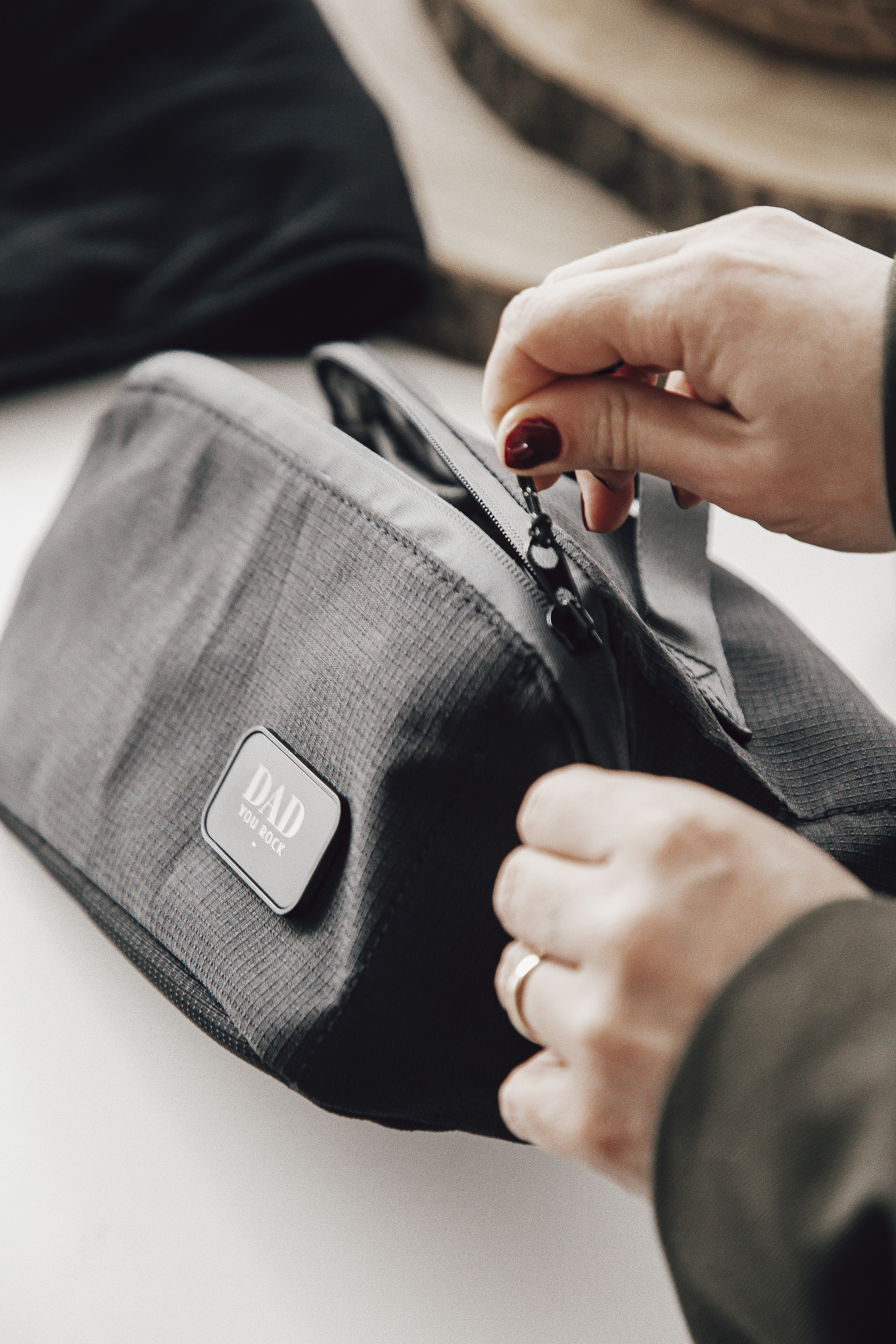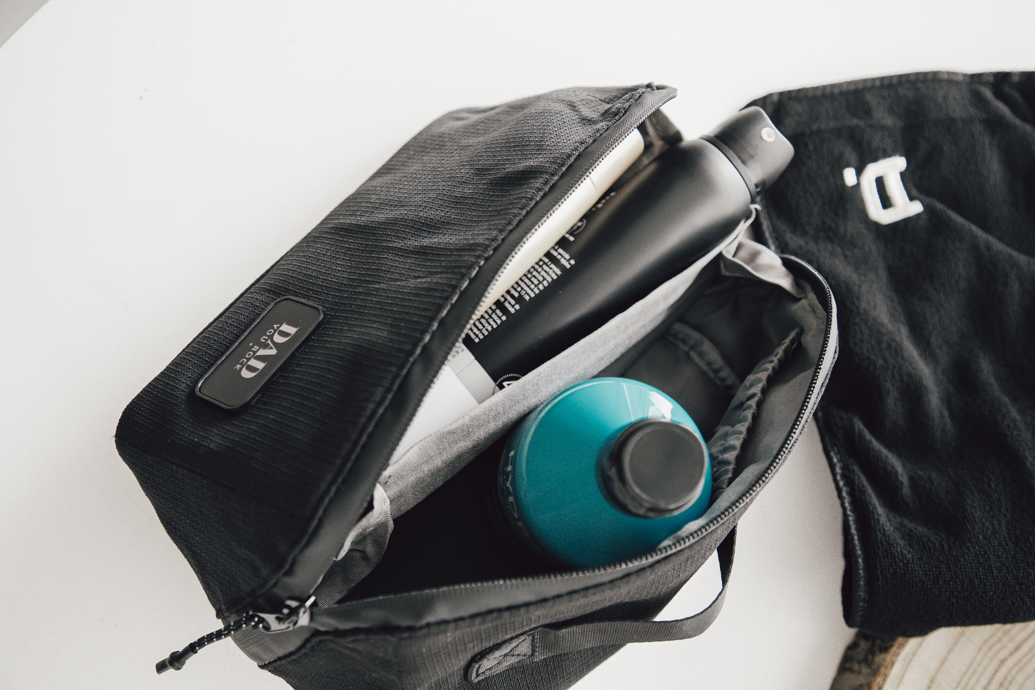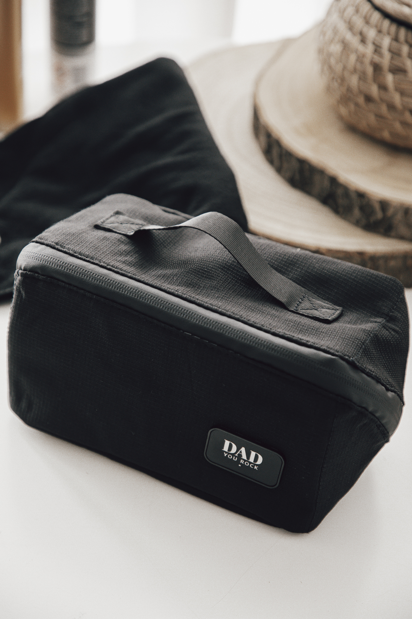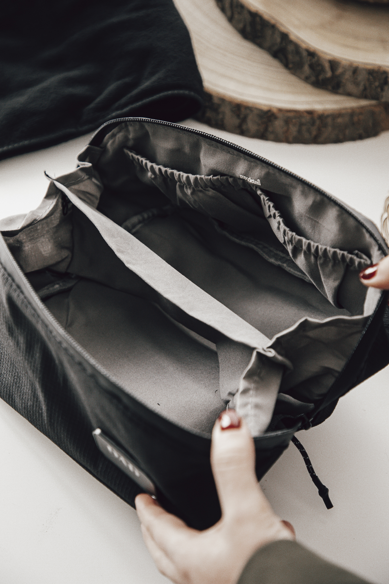 Necessaire masculino feito a partir de materiais reciclados dos oceanos.